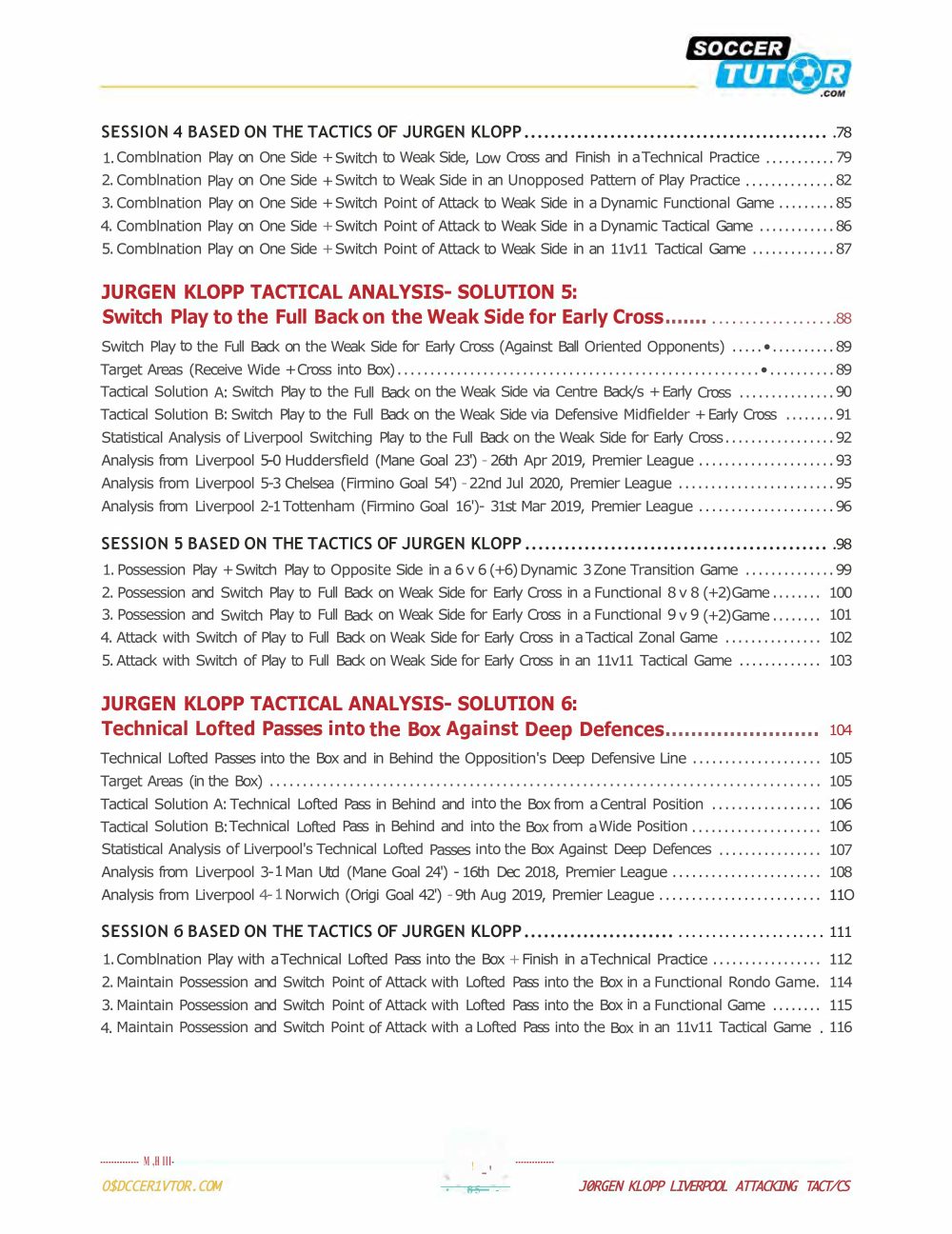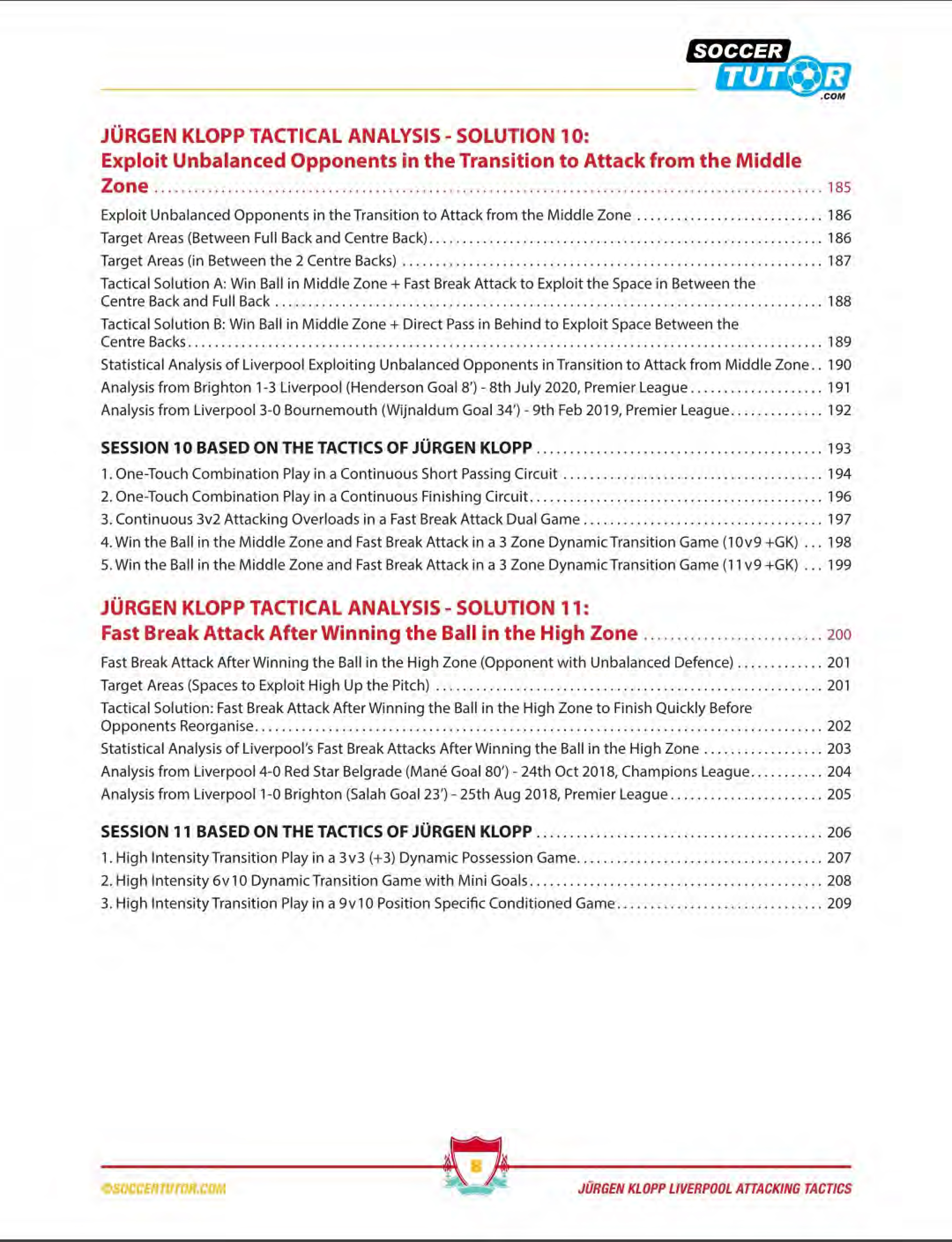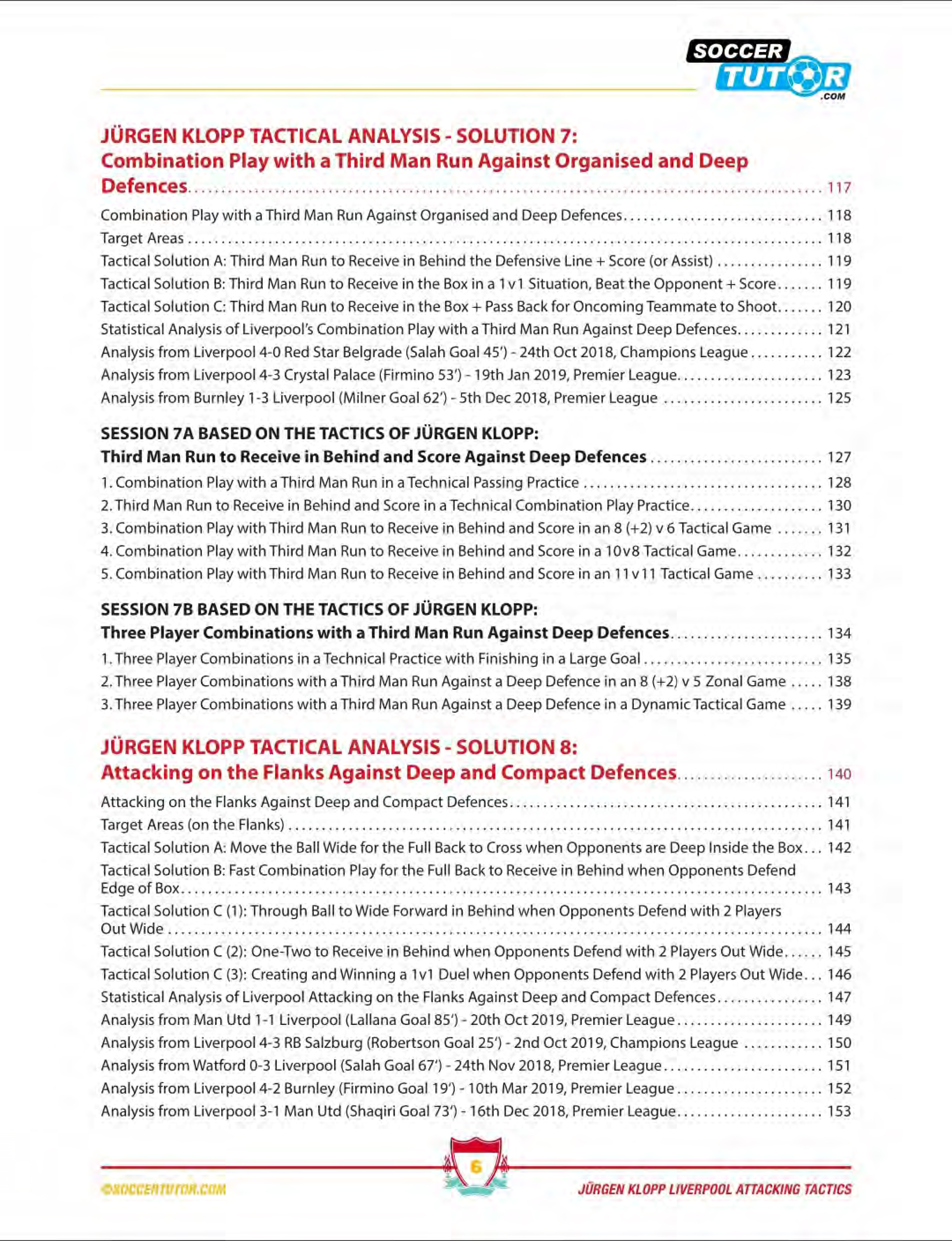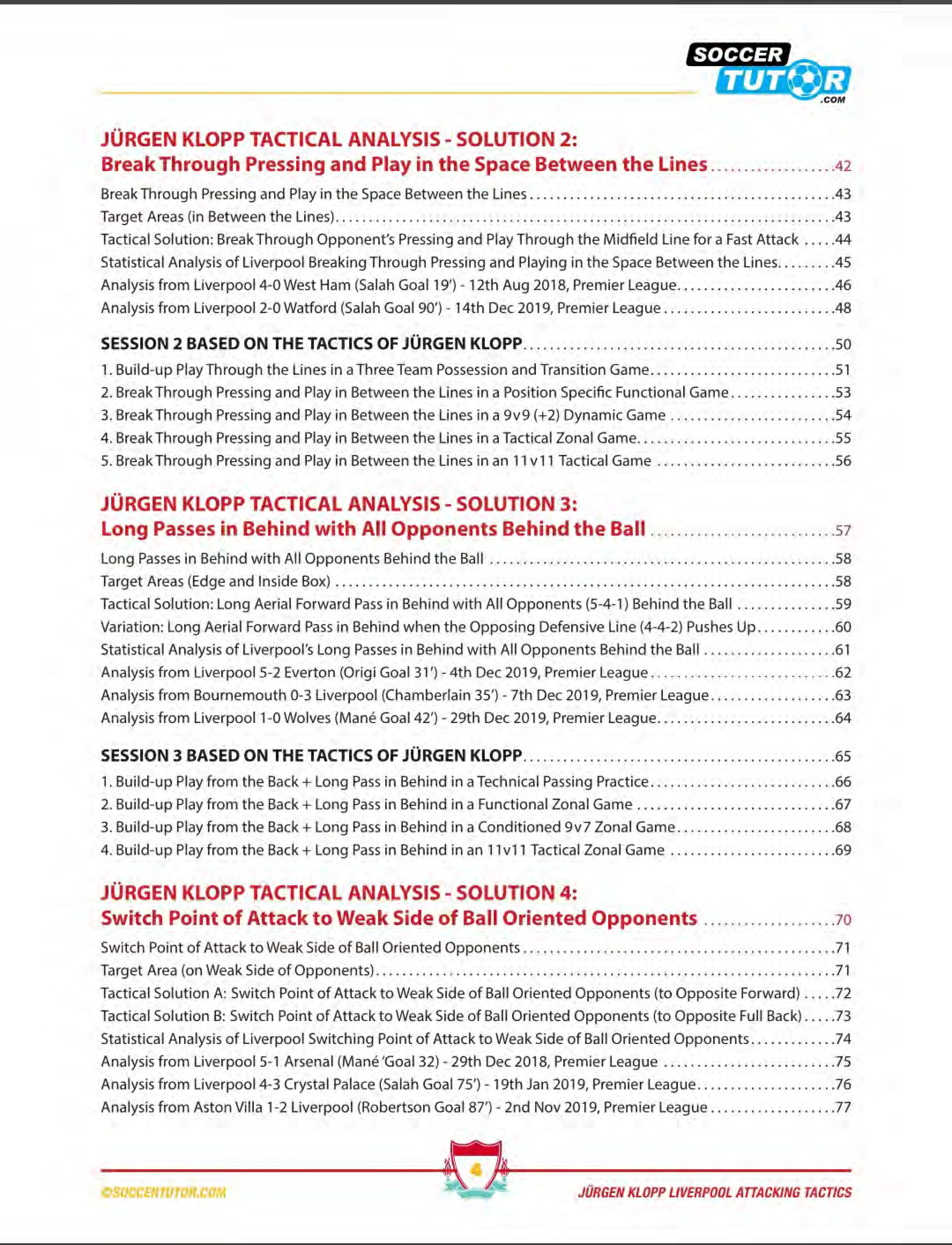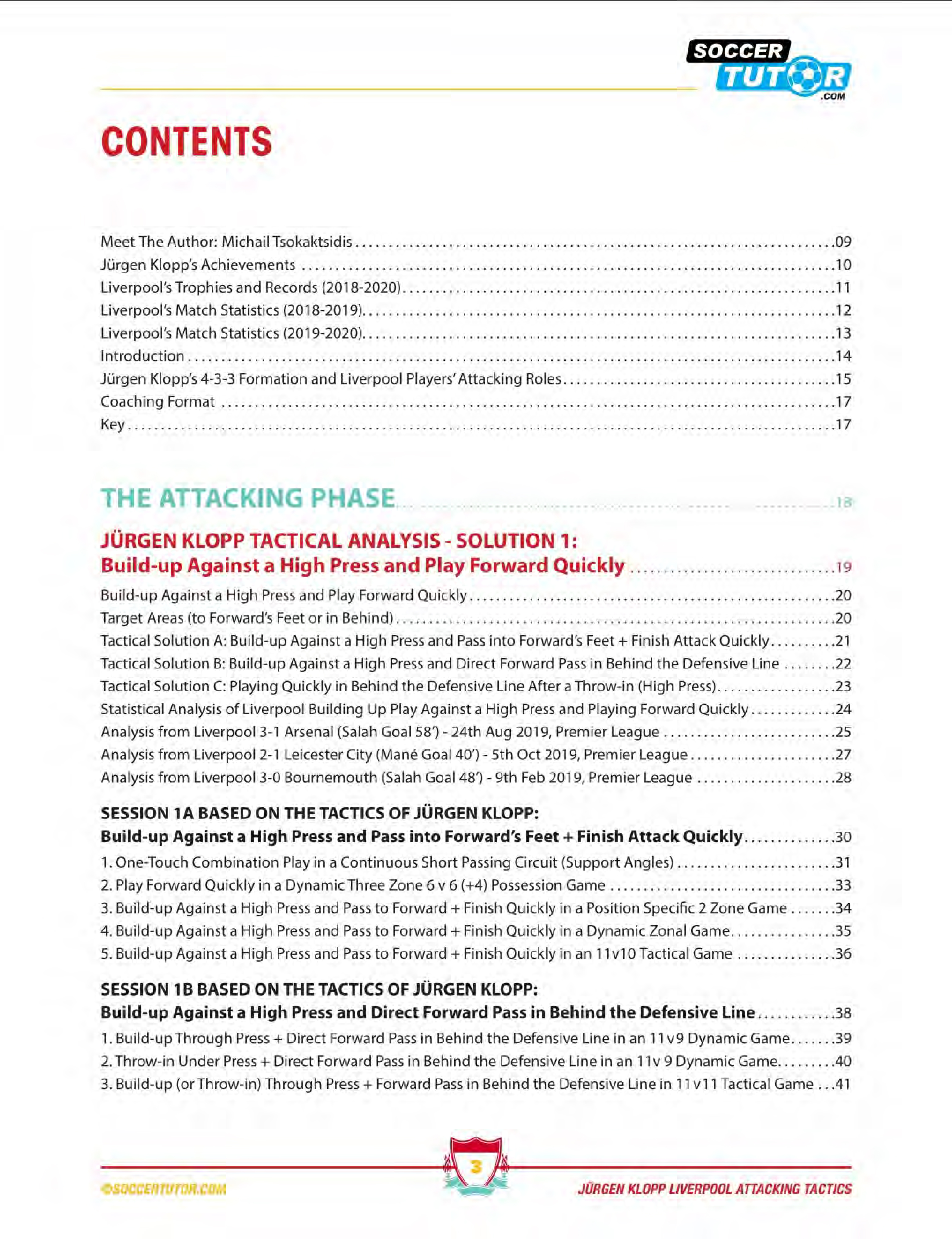 کتاب «Jurgen Klopp – Liverpool Attacking Tactics» اثری تحلیلی و آموزشی درباره سبک هجومی تیم لیورپول تحت هدایت یورگن کلوپ است. این کتاب به بررسی سیستم پایه‌ای ۴-۳-۳ کلوپ می‌پردازد و نشان می‌دهد چگونه او با استفاده از پرسینگ شدید، انتقال سریع توپ و حملات ترکیبی توانسته یکی از موفق‌ترین تیم‌های فوتبال اروپا را بسازد. نویسنده در بخش‌های مختلف، تحلیل‌های تاکتیکی دقیقی از نحوه چینش بازیکنان، وظایف هر پست و الگوهای حمله ارائه می‌دهد. علاوه بر تحلیل، جلسات تمرینی مشخصی برای پیاده‌سازی این سبک در تیم‌ها معرفی شده است. تمرین‌ها شامل موقعیت‌سازی، هماهنگی تیمی، ضدحمله‌های سریع و استفاده مؤثر از فضاها هستند. این کتاب برای مربیان فوتبال فرصتی ارزشمند است تا با فلسفه فوتبالی کلوپ آشنا شوند و روش‌های او را در تیم‌های خود اجرا کنند. بازیکنان نیز می‌توانند با مطالعه این اثر، درک بهتری از نقش فردی و گروهی در سیستم ۴-۳-۳ پیدا کنند. ترکیب تحلیل تئوری و تمرین‌های عملی باعث شده کتاب هم برای آموزش و هم برای تمرین کاربردی باشد. در مجموع این اثر راهنمایی جامع برای مربیانی است که می‌خواهند فوتبال پرانرژی و هجومی کلوپ را الگو قرار دهند.
