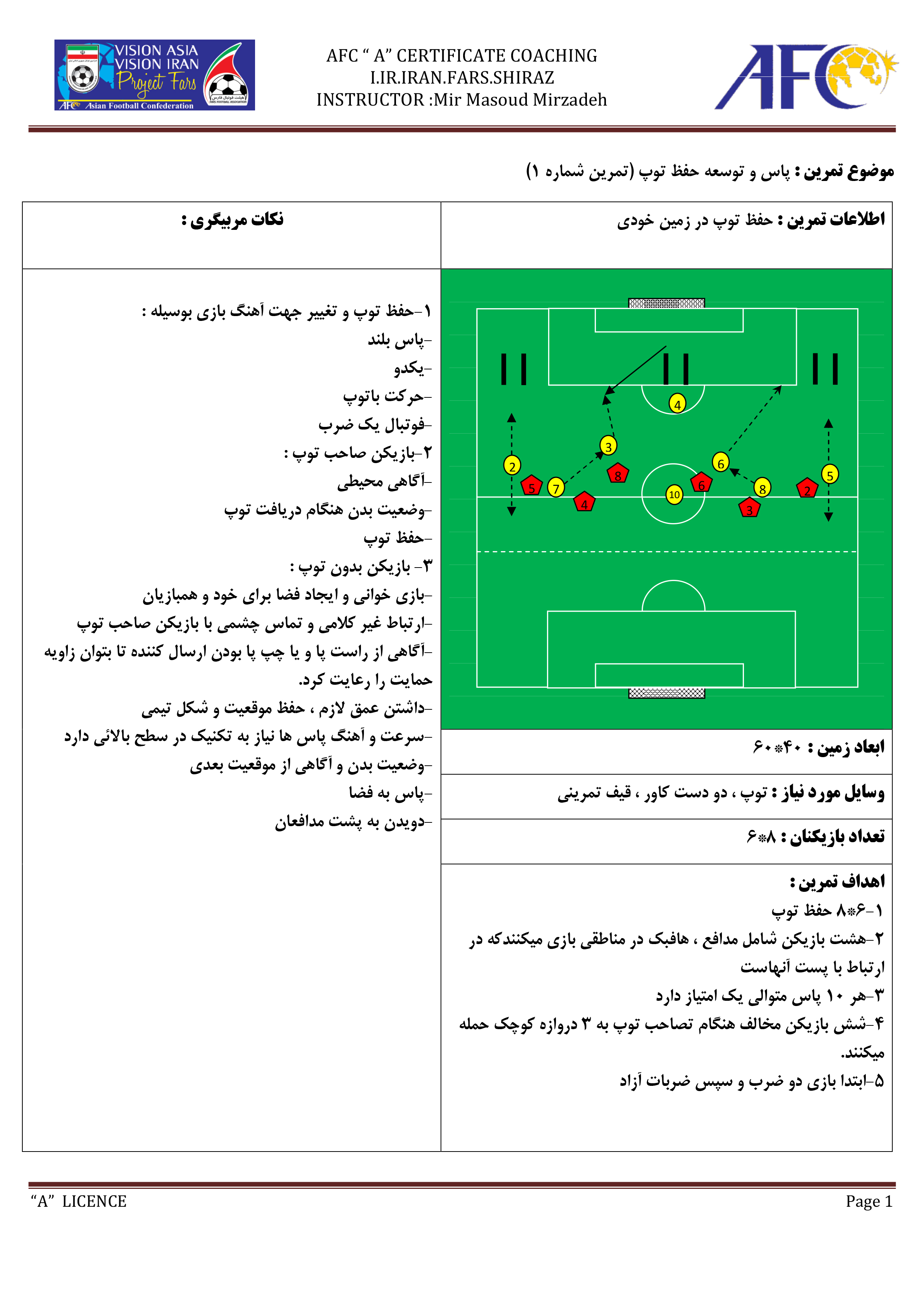 طراحی و اجرای تمرین: نوشتن طرح تمرین روزانه و هفتگی بر اساس اصول فیفا و AFC.