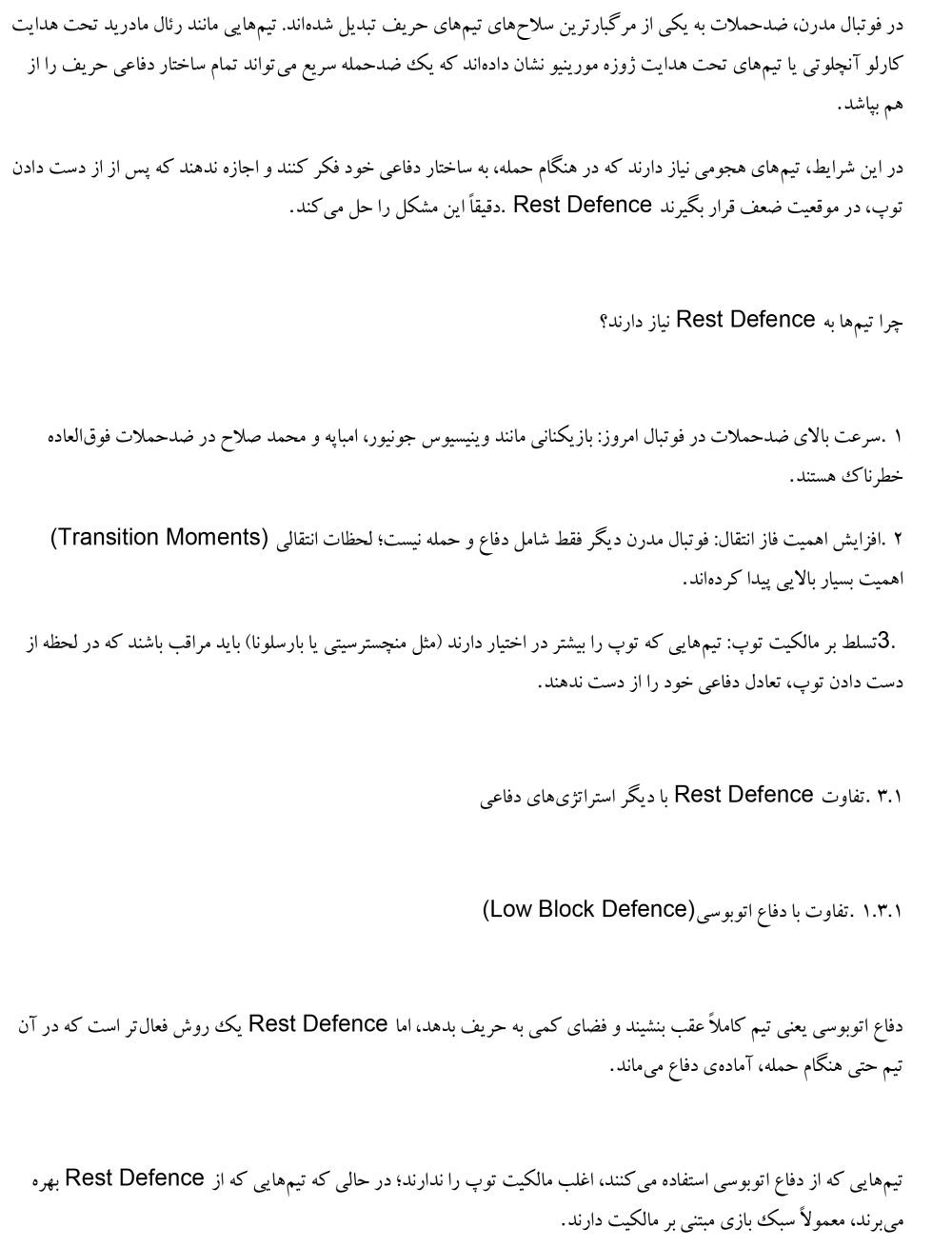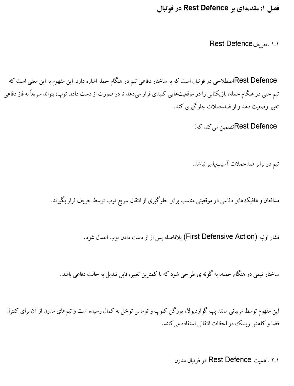 کتاب فوق توضیح جامعی در مورد مهندسی رست دیفنس در فوتبال مدرن میباشد