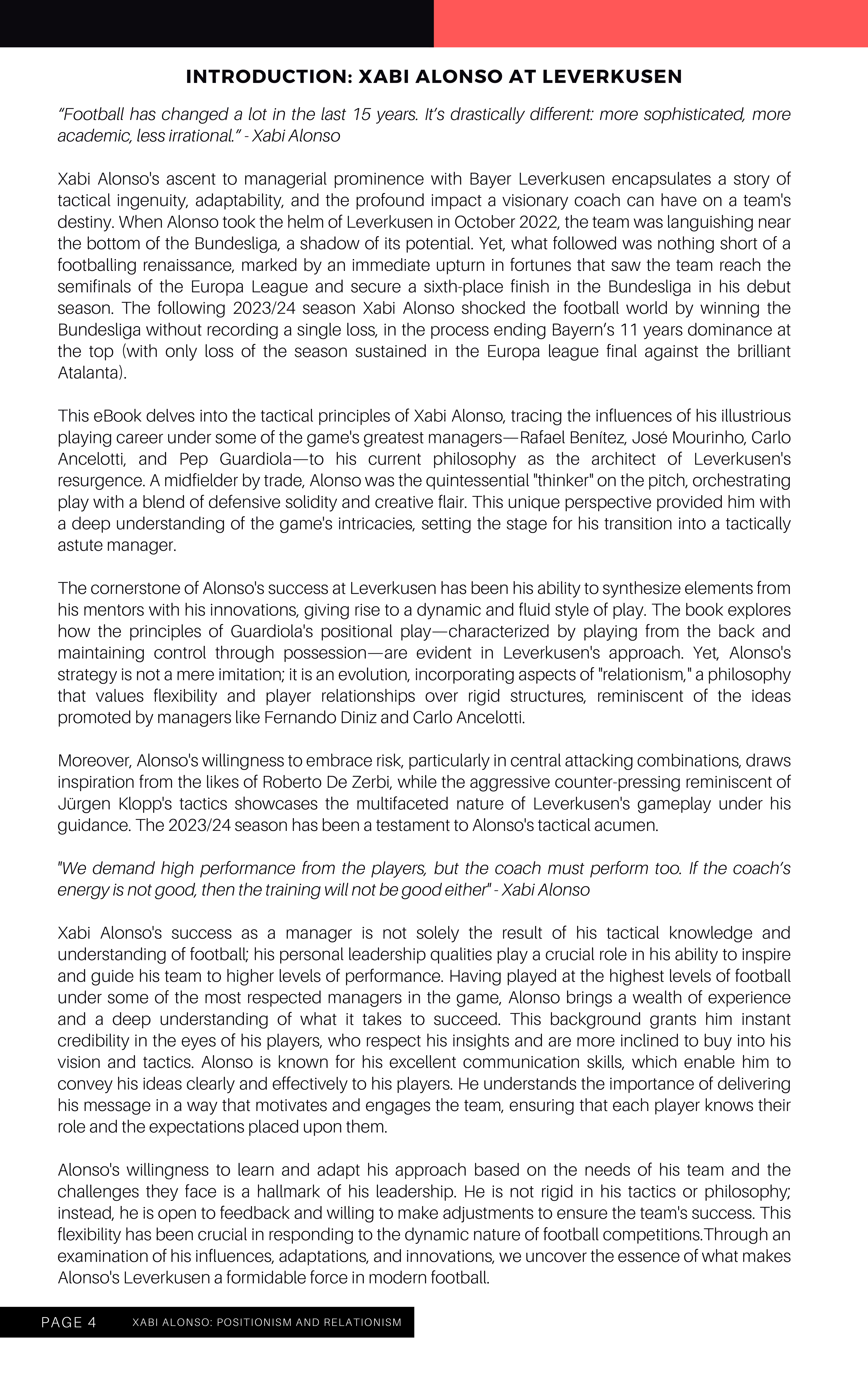 ۵. بخشهایی از کتاب به تحلیلهای تاکتیکی تیم بایر لورکوزن اختصاص دارد که دید عمیقتری به مربیان میدهد.