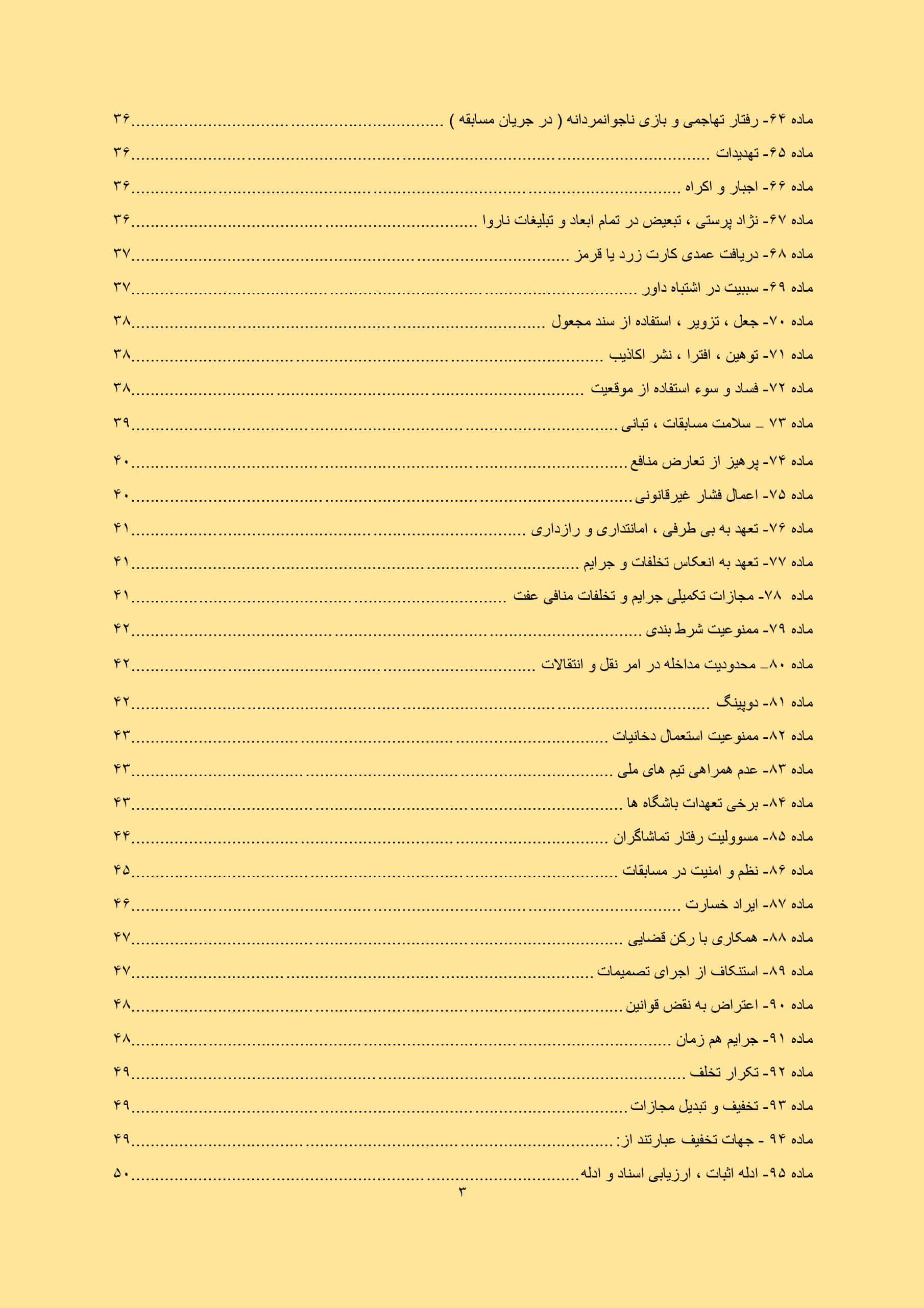 بخشهای مربوط به اخلاق حرفهای، رفتارهای غیراخلاقی، تبانی، شرطبندی و تنبیهات مرتبط.