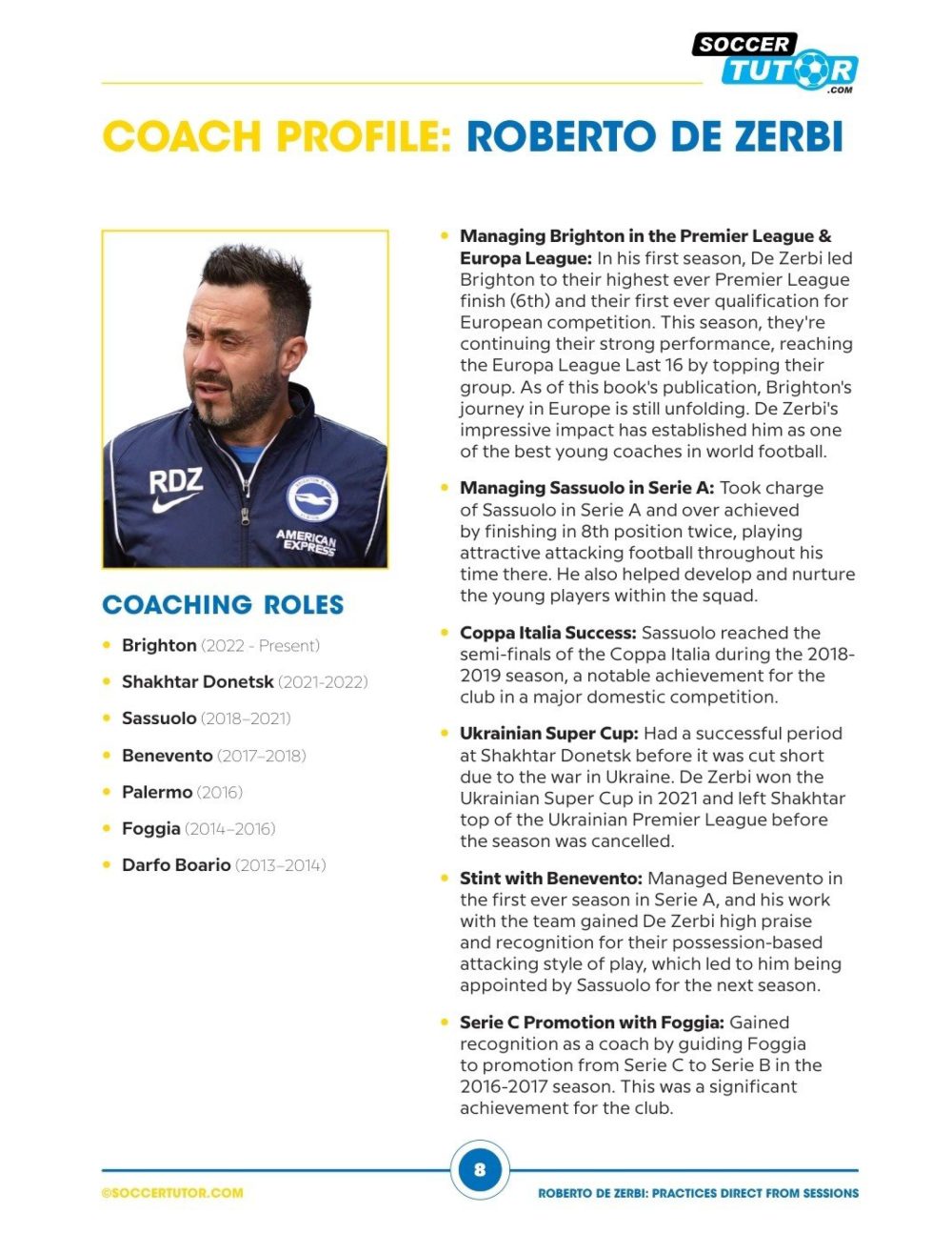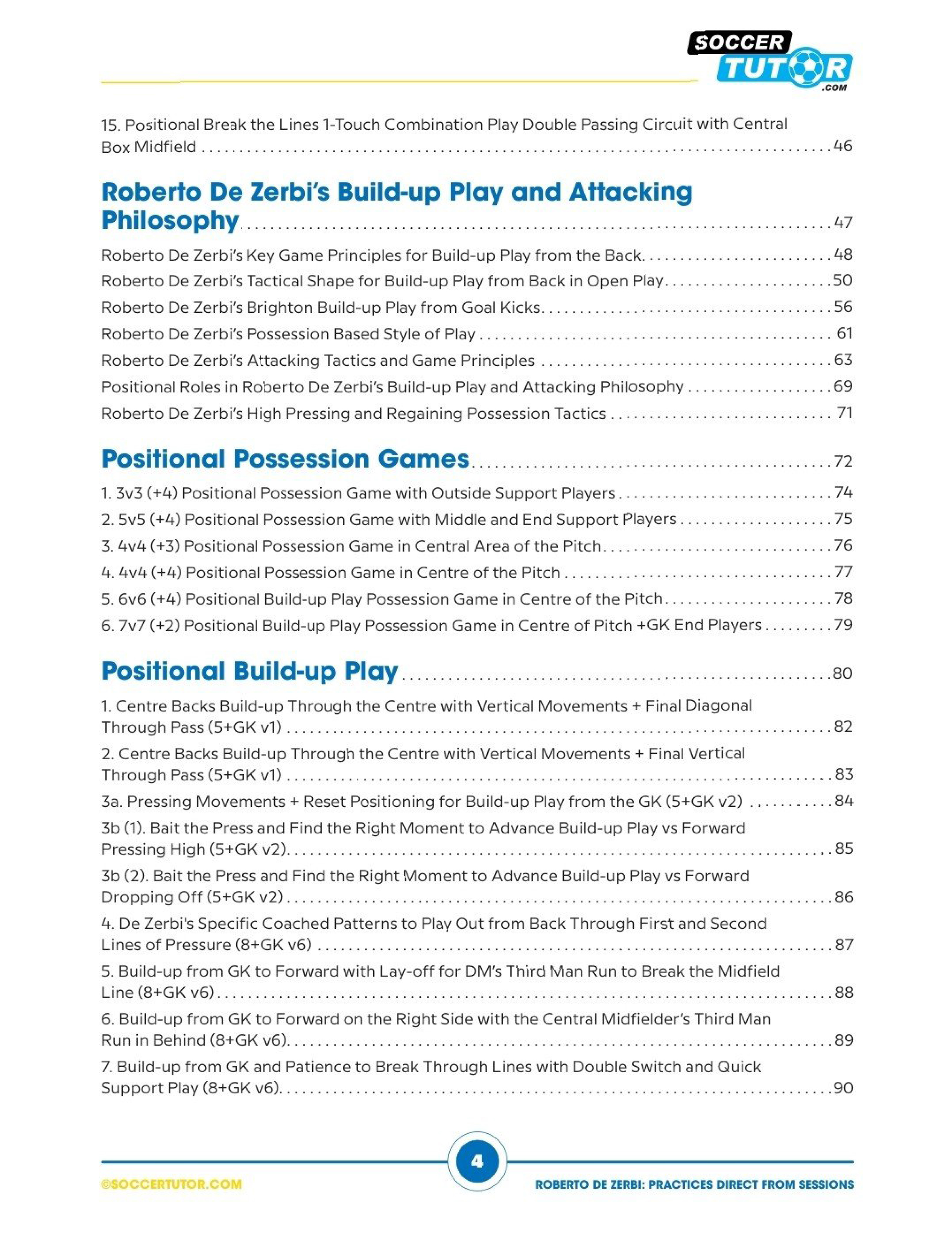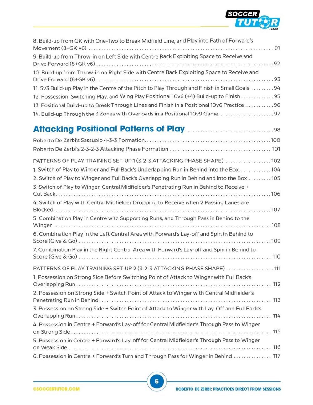 این کتاب بر اساس جلسات تمرینی واقعی «روبرتو دزربی» تهیه شده و به صورت عملی روش بازی تیمهای او را تشریح میکند.